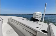 The Boston Whaler 210 Dauntless is a champion of versatility and ease. This center console boat is well equipped with amenities and options for active families and serious anglers. Whaler's flip-up aft seating converts in seconds to form a huge full-width casting platform. Purposeful rod and gear storage and an optional trolling motor panel make it a formidable fishing boat, especially when you factor in the Dauntless's unsinkable safety, smooth handling and soft, dry ride. The 210 also features a plush bow sun lounge option, making the area a natural source of relaxation. And with the powder coated T-Top with rodholders on your new Dauntless, you will be well rigged for fishing. For great sport fishing action or all-day play, the 210 Dauntless is a winner.Key Features:350 hoursHigh & Dry storedNo TrailerOne Owner2024 Battery