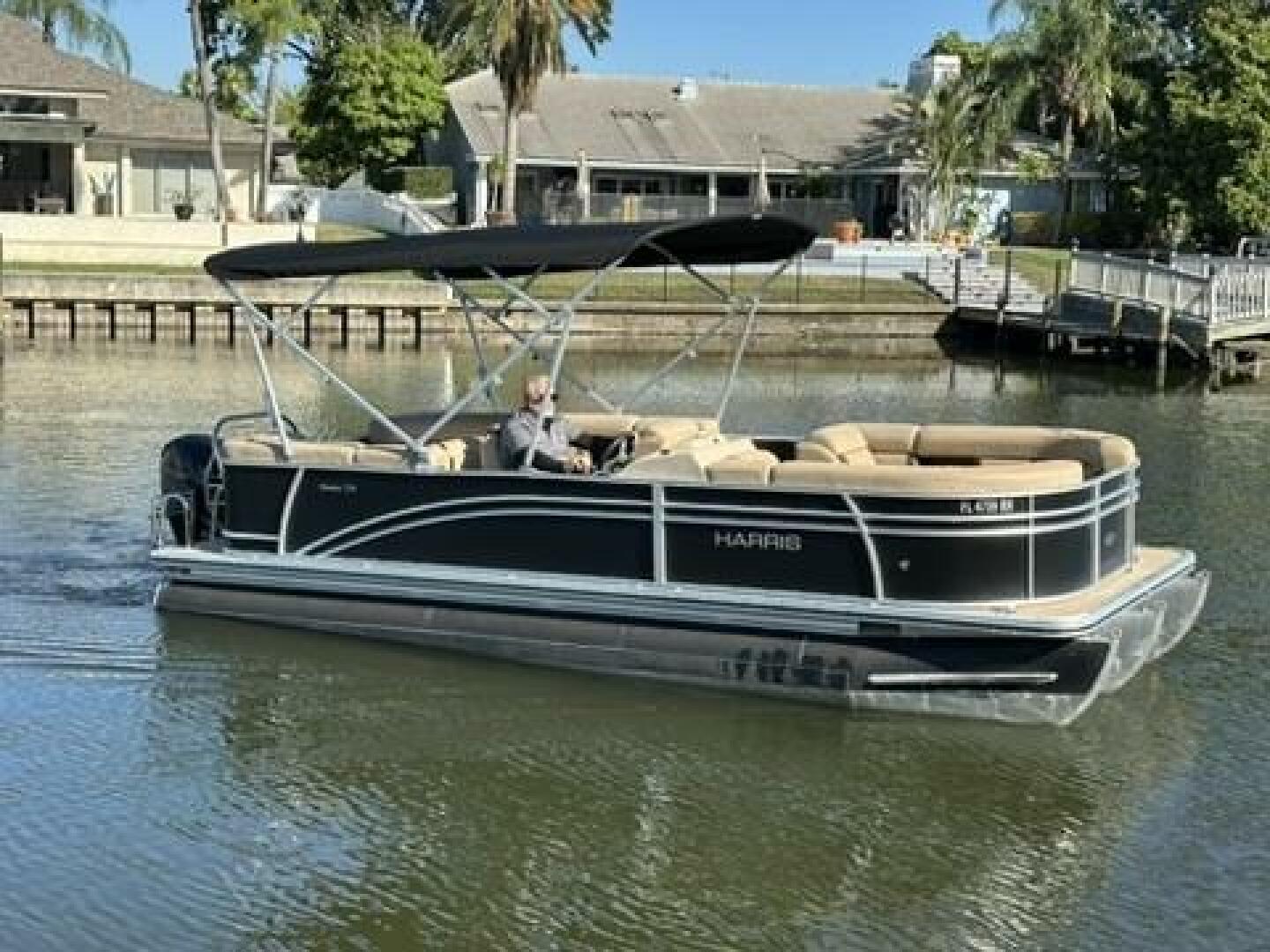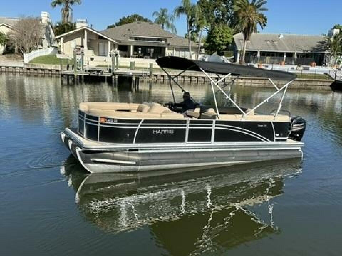 Introducing the 2017 Harris 220 Cruiser Tritoon powered with a low hour100 hr Mercury 4 Stroke. Enthusiasts understand that a true luxury pontoon cannot be labeled. If you seek water sports adventures, authentic fishability and refined cruising, the Cruiser 220 ensures you won’t be disappointed. The comfortable floor plan and a variety of well-thought-out features and amenities assure this model is adaptable to a full range of recreation. Equipped with Color Simrad Go5 GPS /Fish Finder, a like new Bimini Top & pop up changing awning with portable toilet you are ready for a day of fun on the water. With 4 lounging couches & a large Captains Chair at the helm, you are set for the utmost in comfortable cruising. For the superior handling required to accommodate water sports, the 220 has performance-oriented features such as a full-length extruded keel, lifting strakes, ski tow bar and a powerful low hour Mercury 150 4 Stroke with a Stainless Steel prop. The Cruiser 220 tells the world that you, too, cannot be labeled. You blaze your own path.