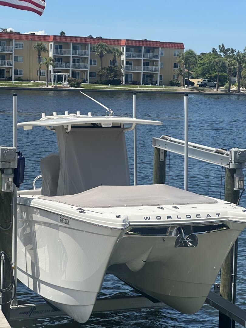 Introducing the 2024 World Cat 280ccx, a remarkable power catamaran that embodies both performance and elegance. With an overall length of 27.5 feet, this vessel is expertly crafted from durable fiberglass, ensuring a smooth and stable ride. Powered by twin digital Yamaha white outboard engines, each delivering 200 horsepower, it achieves an impressive cruising speed of 29 mph and a maximum hull speed of 46.3 mph, making it perfect for family adventures on the water. With only 75 hours of use, these engines promise reliability and efficiency. Equipped with an electric windlass, the 280ccx enhances your boating experience by simplifying anchoring. This catamaran's spacious design allows for comfortable outings, whether you're fishing, cruising, or enjoying time with friends and family. Experience the perfect blend of speed, comfort, stability and style with the World Cat 280ccx, a true gem in the world of power catamarans.New as rigged $310K. This boat is turnkey ready for the summer! Owner doesn't have time to enjoy. His loss is your gain. Custom mooring cover & engine covers complete this beautiful boat. If you are looking for a like new, loaded World Cat 280CCX, this is your next boat. Call, text or e-mail to set up a viewing of this Bristol 280CCX.