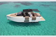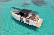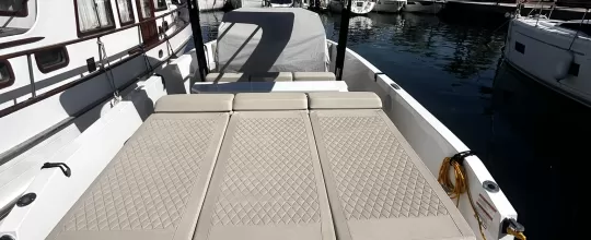 Below deck, you’ll find a bright and stylish interior with a double cabin, convertible lounge area, and bathroom – ideal for overnight stays or weekend getaways. Perfect for Day cruising, island hopping, or weekend escapes in style and comfort.