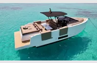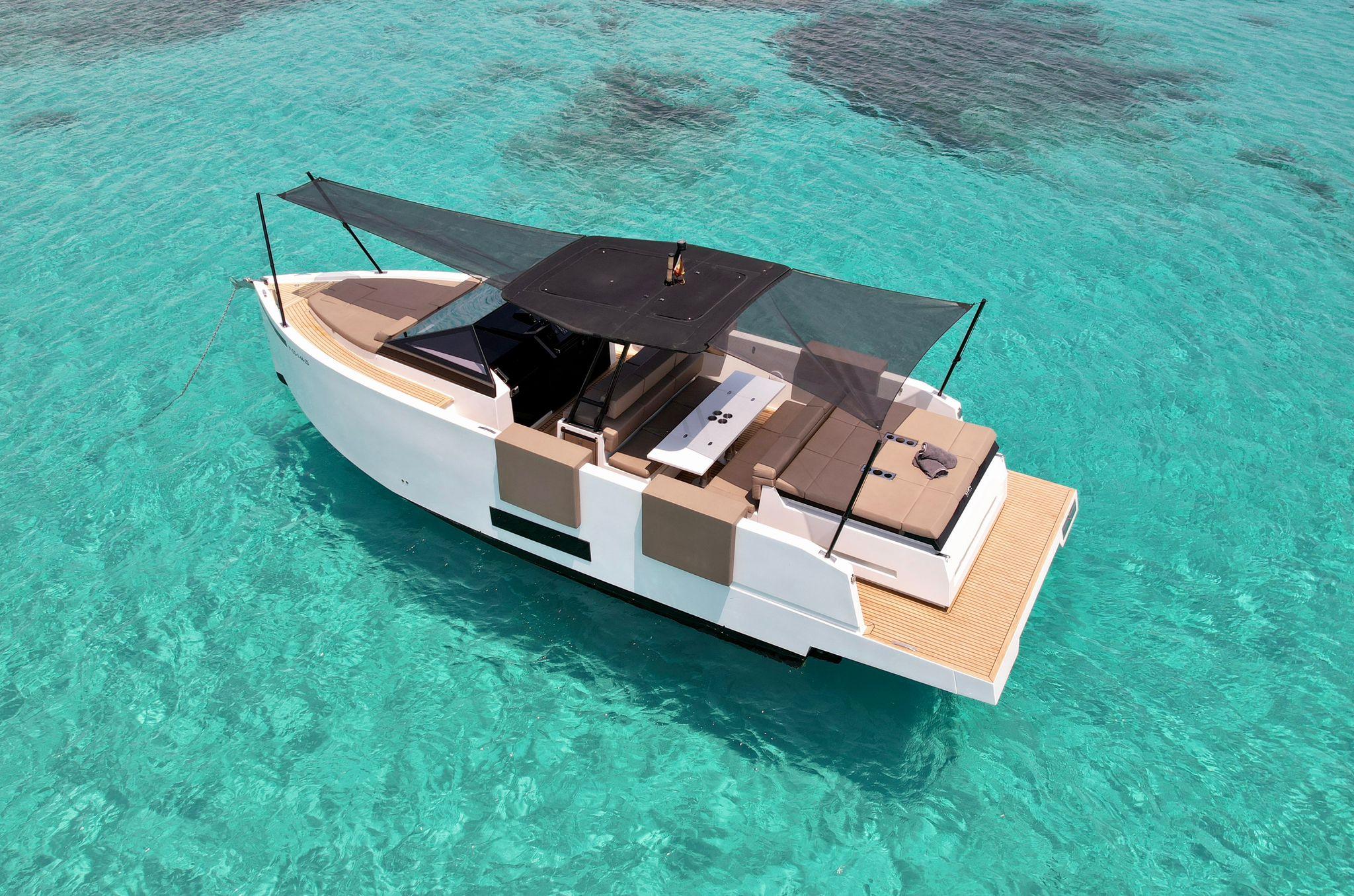 This 2019 De Antonio D34 Cruiser is a stunning example of modern design, performance, and comfort. Built in Barcelona, Spain, by the award-winning De Antonio Yachts, this model combines sleek lines, innovative layout, and hidden outboard engines for a clean, elegant profile and easy maintenance. Engines: Twin outboard engines (concealed beneath the aft sunbed) – powerful, efficient, and easy to service