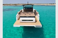 The D34 Cruiser offers generous deck space and a smart, walk-around layout perfect for entertaining or relaxing at sea. The bow and stern sunbeds, large dining area with table, and well-equipped wet bar create a seamless open-air experience.