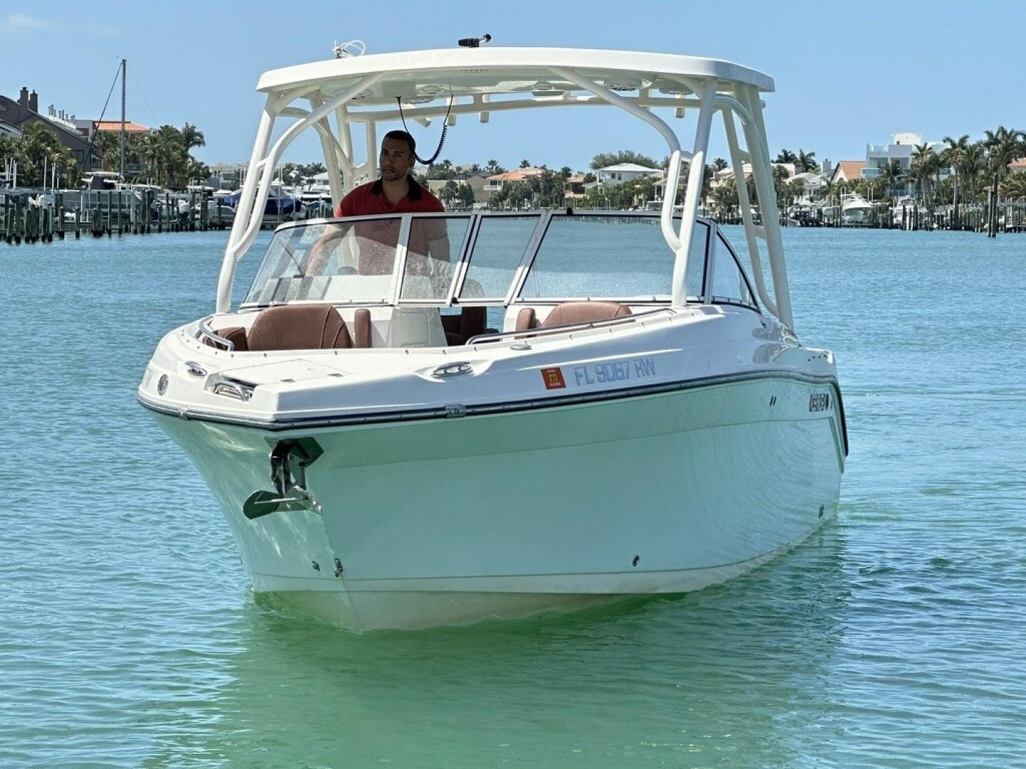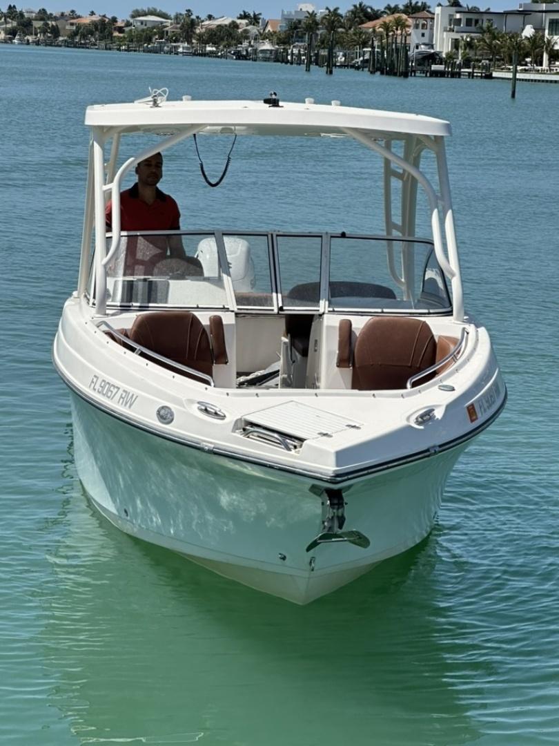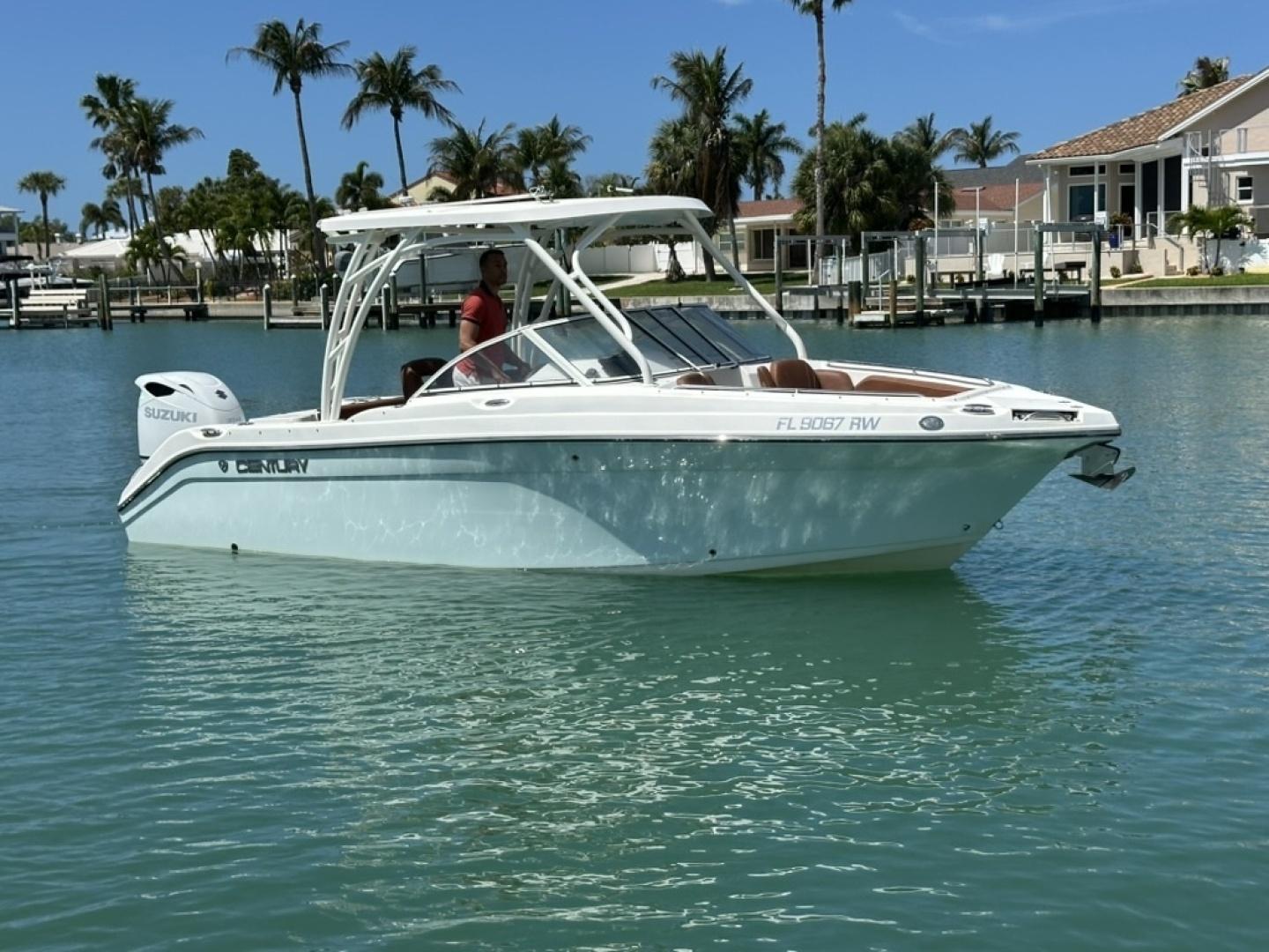 2019 Century Resorter. Suzuki DF 350 Dual Prop w 685Hrs. Custom Tandem Aluminum Gulf Coast Trailer. Loaded with all the goodies.The 24 Resorter reignites the popular Century Boats model of yesteryear – updated with all the latest innovations and technology of today. The cutting-edge dual console design delivers the versatility you demand with amenities, features and performance needed for hardcore fishing trips, day cruising excursions and high-octane family watersports.Dual console design features a large bow seating area that creates an ideal social setting with a removal table, beach-boarding ladder and foldable armrests that create comfortable loungers.Designed for offshore fishing, luxurious day cruising and family-friendly watersports activities.Extra-large optional fiberglass hard-top with misting system creates a comfortable retreat from the elements – and standard freshwater shower and sink prep station keep your day fresh.