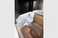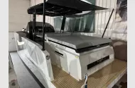 The D28 is a 7.99-meter day boat distinguished by its striking exterior design, featuring a bold black-finished console that adds both elegance and sportiness to the helm. It also includes a fully equipped bathroom with forward access.