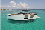 This 2019 De Antonio D34 Cruiser is a stunning example of modern design, performance, and comfort. Built in Barcelona, Spain, by the award-winning De Antonio Yachts, this model combines sleek lines, innovative layout, and hidden outboard engines for a clean, elegant profile and easy maintenance. Engines: Twin outboard engines (concealed beneath the aft sunbed) – powerful, efficient, and easy to service