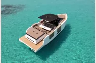 The D34 Cruiser offers generous deck space and a smart, walk-around layout perfect for entertaining or relaxing at sea. The bow and stern sunbeds, large dining area with table, and well-equipped wet bar create a seamless open-air experience.