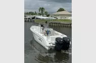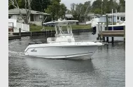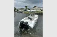 2014 Pro-Line 26 Super Sport, Twin 150 Mercury Verado 4 Stokes 690hrs. New to the market & won't last long. This one is ready for summer fishing & fun. Lewmar Electric Anchor Windlass, Tilt Hydraulic Steering Helm, Hard Top With E Box, Speakers, Rocket Launchers & Spreader Light, 12" Color Simrad MFD with NEMA connectivity for Engine Data, Large Bait Well, 2 Insulated Macerator pump out Deck Fish Boxes, Folding Transom Seat, Telescoping Swim Ladder, Large Leaning Post Seat with Integrated Back Rest, Huge Forward Sun Pad Seating, Full Stainless Bow Rail for safety & Security for Bow Passengers, Deep Console Storage with Room for a Porta Potty. Yes She's ready for the next owner. Owner Moving, must sell.A few years back the big buzzword was “performance”. Pro-Line’s design team introduced the Super Sport line of boats, and with Pro-Line’s fishing heritage, the 26 Super Sport delivers on both the fishing features and the performance. With an 8’6” beam and a 22 degree deadrise, this boat gives new meaning to center console performance. A faster hull, a smoother ride, and better fuel economy is what Pro-Line performance is all about. On deck you’ll find an abundance of fishing features normally found on much larger and more expensive boats. A lighted baitwell is integrated into the transom aft of the deck to ensure plenty of room to fight the fish. In the deck are 2 large insulated fishboxes. Rod storage is located under the gunwale. And rod holders are strategically placed above the gunwales. There’s a large forward casting deck with 2 storage lockers, and the console has an usable enclosed head. And when it comes time for sitting and relaxing, the 26 SS delivers. The console has a forward molded bench seat with backrest and on the aft deck is Pro-Line’s foldaway transom bench seat with backrest.