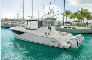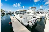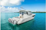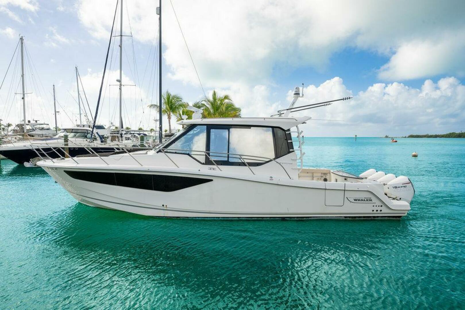 Fresh on the market, this single-owner 2023 Boston Whaler 405 Conquest is exceptionally well equipped and turnkey ready. Fully loaded with premium features including a Seakeeper, ice maker, triple Simrad GPS displays, autopilot, cockpit air conditioning, and climate-controlled living quarters, this vessel offers comfort and capability in any conditions. The well-designed layout includes two berths and a single head, making her ideal for both day trips and extended stays.Renowned for its legendary unsinkable hull and stable ride, the 405 Conquest is widely regarded as one of the best platforms for day cruising, fishing, family outings, or long-range adventures. Powered by quad Mercury 450 outboards with only 60 hours, this pristine vessel offers outstanding performance and peace of mind, with many years of use ahead.Whether you want to get there fast or enjoy the journey at a relaxed pace, this boat easily accommodates a full fishing team or the entire family in comfort and style.